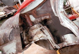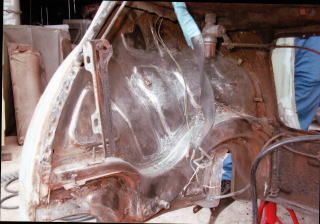 震災と不況の影響でカーサービスさん板金部門をやめてしまったので、カーサービスに在籍していた職人さんにお願いして、ガレージで3か月かけてボディを